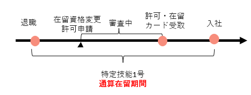 特定技能1号へ働きながら準備をする在留資格「特定活動」で在留し特定技能が許可されるまでの期間も、「特定技能1号」の期間に通算されます。